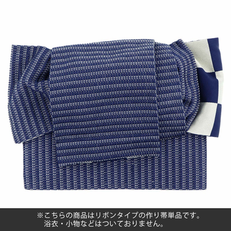 6. 浴衣 作り帯 半幅帯 角出し風タイプ 結び帯単品「ネイビー 市松 紺×白」 日本製 半巾帯 レディース 女性用 浴衣帯 作り帯単品 京都きもの町オリジナル 【メール便不可】ss2406ohs10