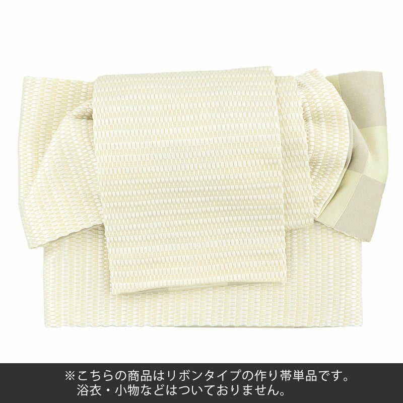 浴衣 作り帯 半幅帯 角出し風タイプ 結び帯単品「ホワイト 市松 白×グレー」 日本製 半巾帯 レディース 女性用 浴衣帯 作り帯単品 京都きもの町オリジナル