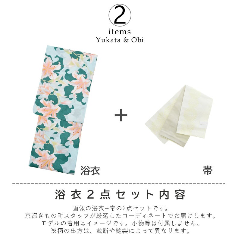 KIMONOMACHIオリジナル!浴衣と帯がセットになったコーディネート済みレディース浴衣セットです。