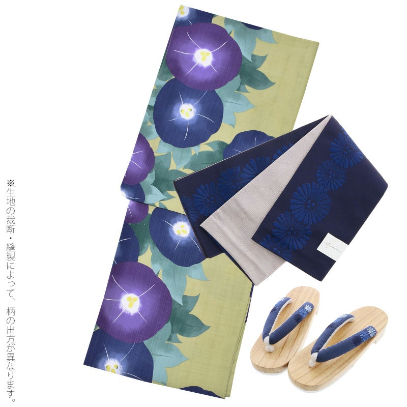 【商品内容】女性用浴衣1点、帯1点、刺繍下駄1点の計3点セット