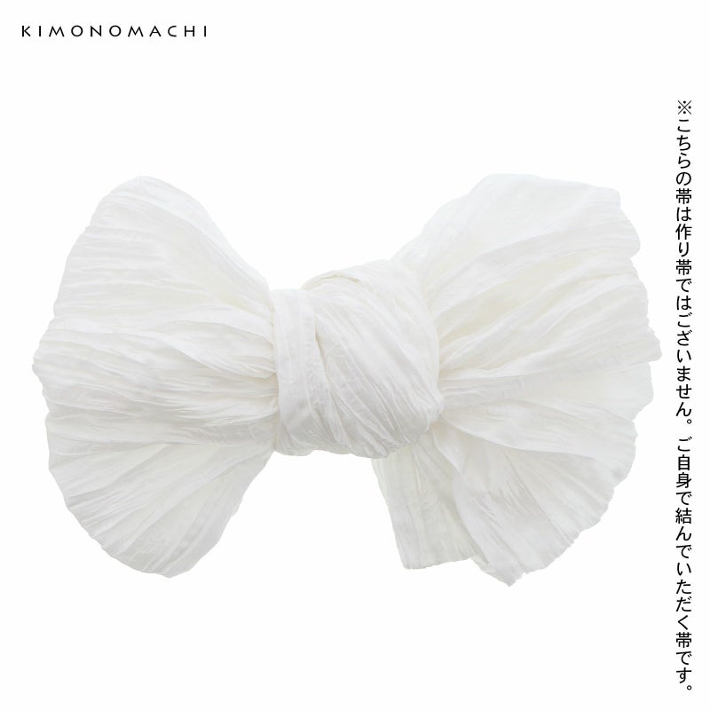 帯:明るい白。光沢のある生地感とくしゅくしゅのしわが、軽やかな印象にしてくれます。