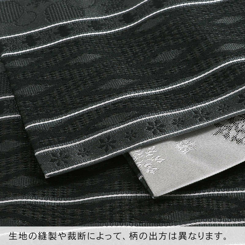 【色柄】墨黒と浅い藍墨色。白の細縞の中に菱格子文様、雪輪や雪花紋が配置された柄。裏は薄グレーの地に大小さまざまな雪の結晶紋。