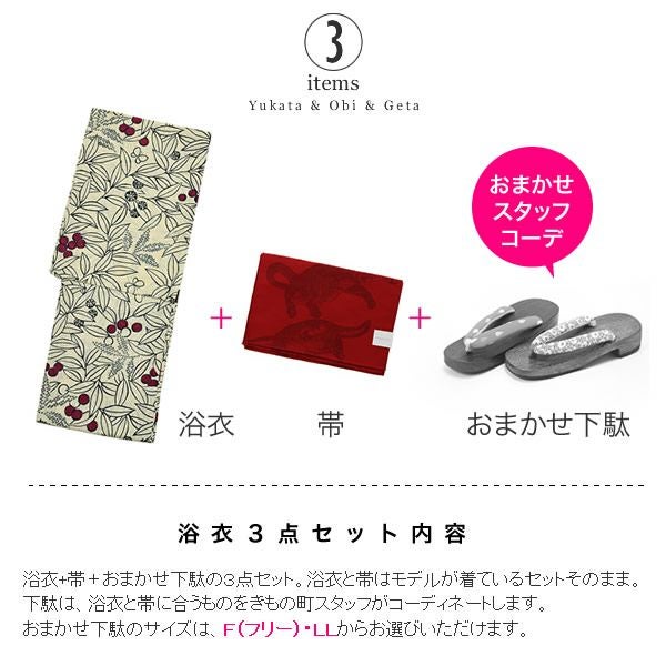 他の画像を見る 送料無料 京都きもの町オリジナル浴衣セット 花火大会、夏デートに 京都きもの町オリジナル浴衣セット「生成り 木の実」S、フリー、TL、LL 綿浴衣 レディース レトロ 女性浴衣3点セット 【メール便不可】 きもの町価格 ¥ 11,000 税込 在庫切れ カートに入れる お気に入りに登録する