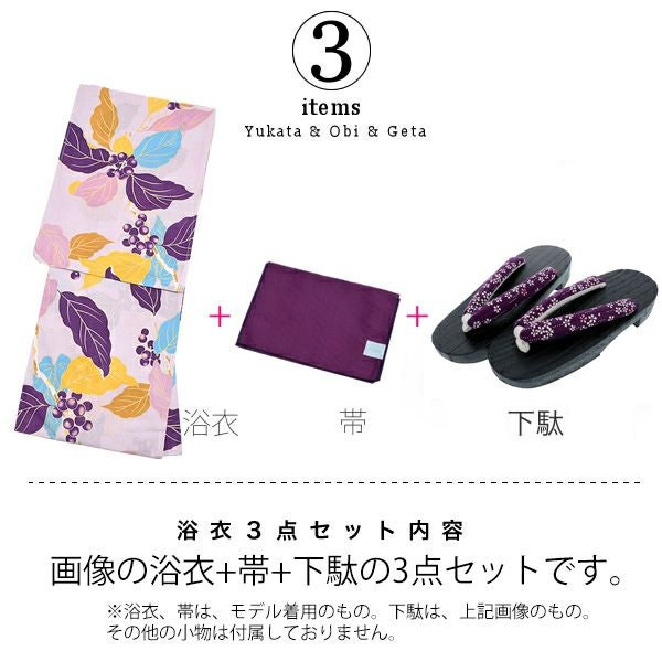 他の画像を見る 浴衣と帯に下駄がついた浴衣セット 京都きもの町オリジナル浴衣3点セット「パープルリーフ」S、フリー、TL、LL 女性浴衣 レディース お仕立て上がり浴衣 【メール便不可】 きもの町価格 ¥ 8,140 税込 在庫切れ カートに入れる お気に入りに登録する