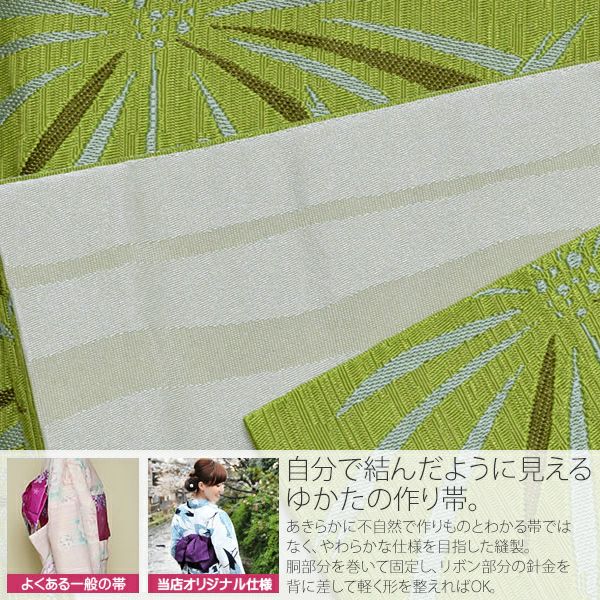 他の画像を見る 作り帯 京都きもの町オリジナル 浴衣帯 【Prices down】リボンタイプ 結び帯単品「グリーン カタバミ」京都きもの町オリジナル 浴衣帯 作り帯 付け帯 【メール便不可】ss2206ohs20 きもの町価格 ¥ 5,090 税込 在庫切れ 詳細を見る お気に入りに登録する
