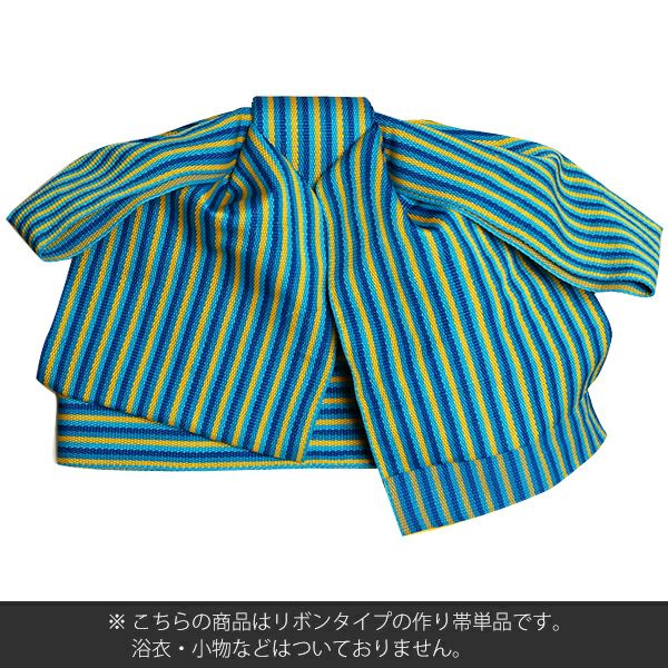他の画像を見る 作り帯 京都きもの町オリジナル 浴衣帯 【Prices down】リボンタイプ 結び帯単品「青緑×イエロー縞」京都きもの町オリジナル 浴衣帯 作り帯 付け帯 【メール便不可】ss2512oyk10 きもの町価格 ¥ 6,215 税込 カートに入れる お気に入りに登録する