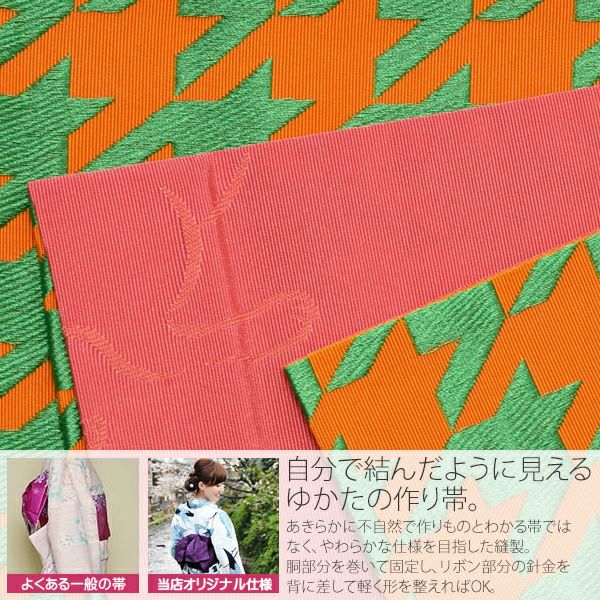 他の画像を見る 作り帯 京都きもの町オリジナル 浴衣帯 【Prices down】角出し風タイプ 結び帯単品「橙×緑 千鳥」京都きもの町オリジナル 浴衣帯 作り帯 付け帯 【メール便不可】ss2512oyk10 きもの町価格 ¥ 7,273 税込 カートに入れる お気に入りに登録する