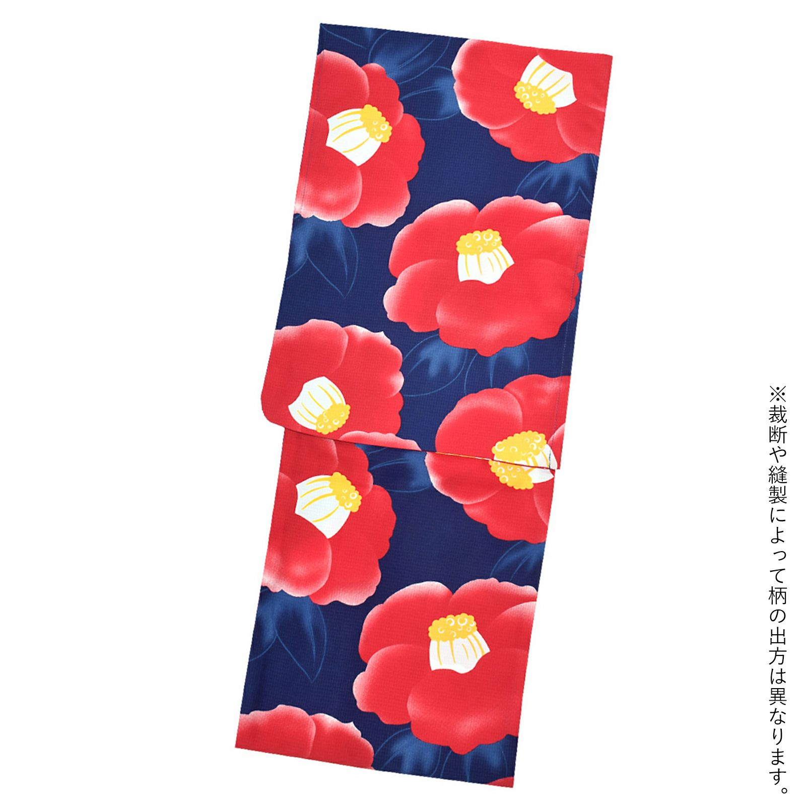 KIMONOMACHI オリジナル 吸水速乾ポリエステル浴衣 【Prices down2】浴衣 レディース 「ネイビー 水彩椿」 吸水速乾 CoolPass ポリエステル浴衣 ポリ浴衣 大人 個性的 花火大会 夏祭り 女性浴衣 女性ゆかた 夏着物 単衣着物 京都きもの町オリジナル KIMONOMACHI 【メール便不可】ss2506ykl10
