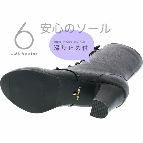 シンプルな黒色の編み上げブーツ(レースアップブーツ)です。
