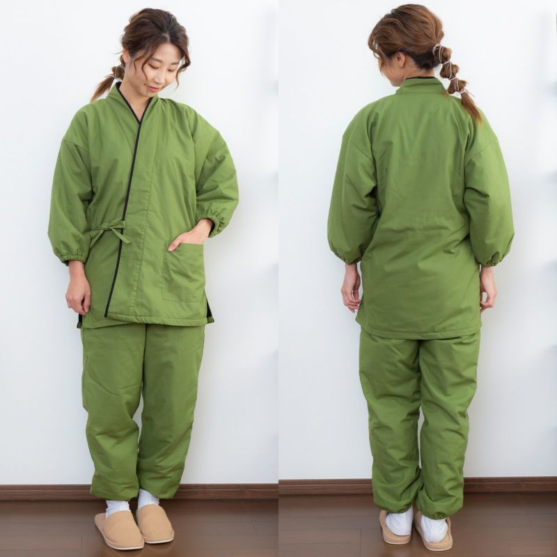 裏地フリースと中綿入りで暖かな男女兼用作務衣です。上着、ズボンの上下に分かれています。