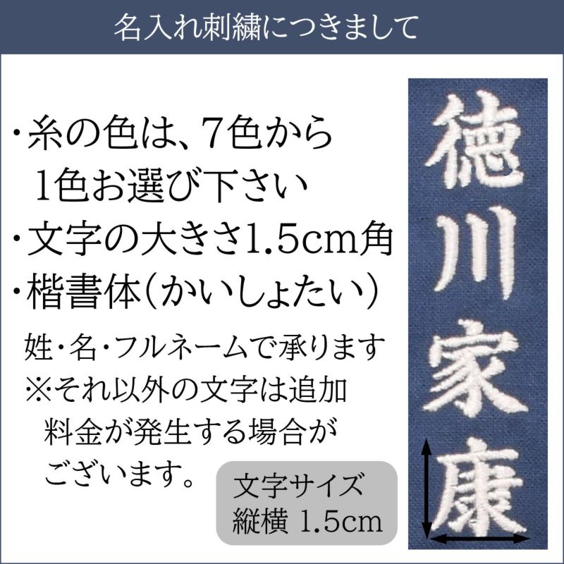 ※ご購入の際、備考欄に名入れ刺繍を希望されるお名前をお書き添えください。姓・名・フルネームで承ります。