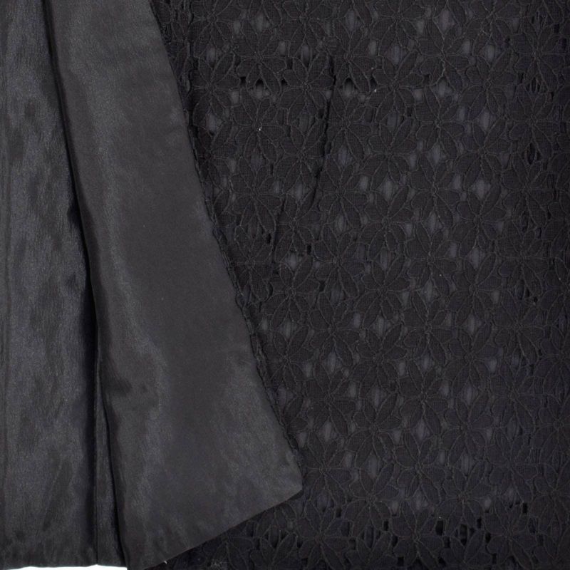 黒のエレガントなフラワーレースに黒の色裏地を重ねた配色。黒一色の中に浮かび上がるレースの陰影が艶やかな雰囲気です。