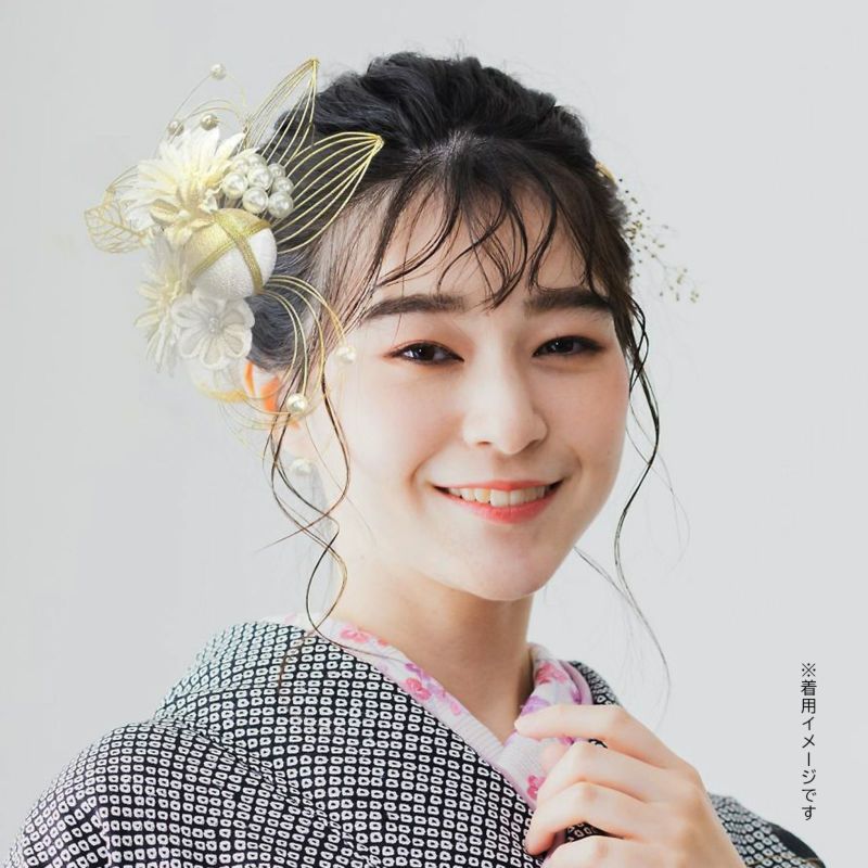 (卒業式応援10%OFFCOUPON1/22迄)髪飾り 成人式 卒業式 2点セット「白×ゴールド フラワー」水引 コーム Uピン 振袖用髪飾り お花髪飾り 結婚式 前撮り 後撮り 着物【メール便不可】