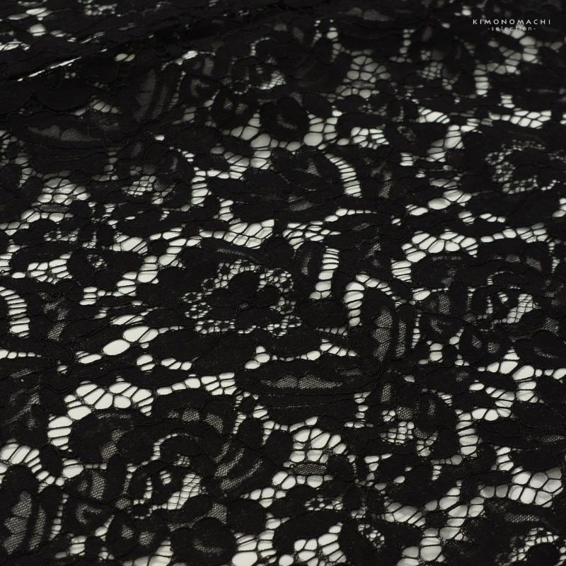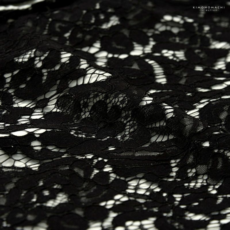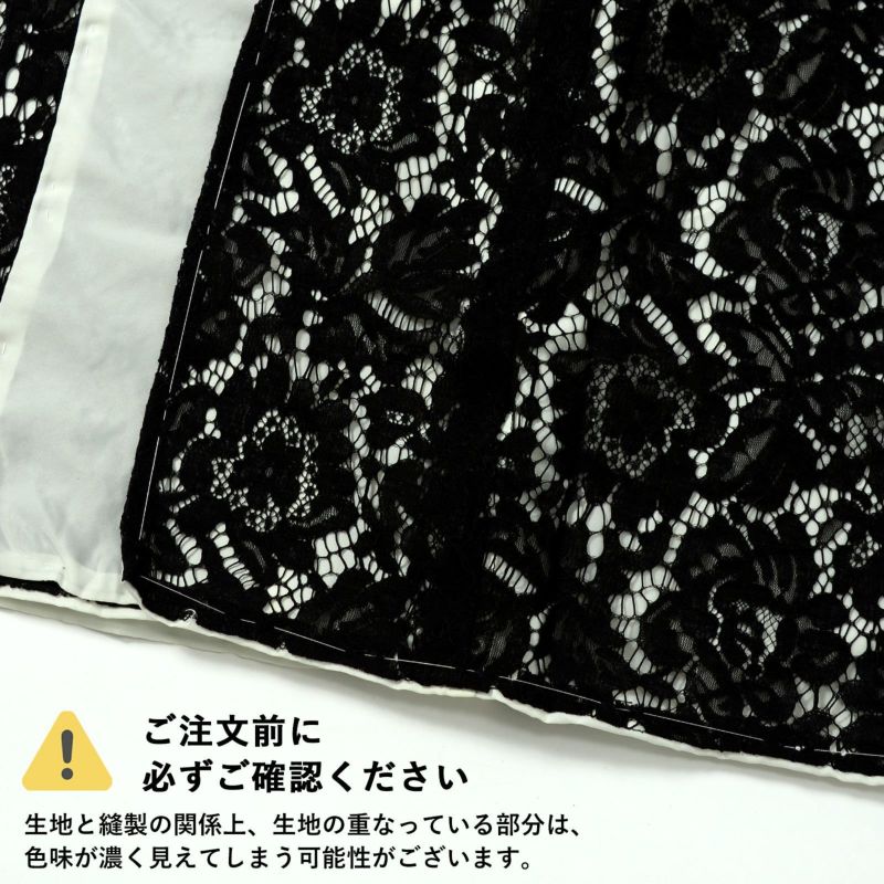 【色柄】黒の網地に大きな花々のレース。裏地はオフホワイト。