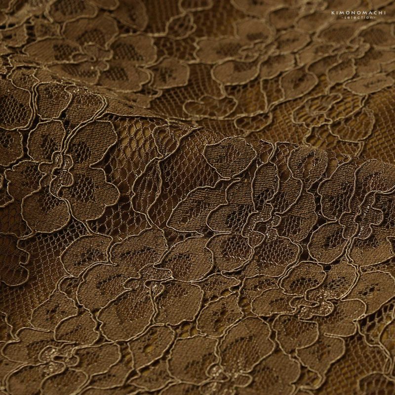 【色柄】茶色のチュール地にお花のレース。裏地は茶色みの黄土色。