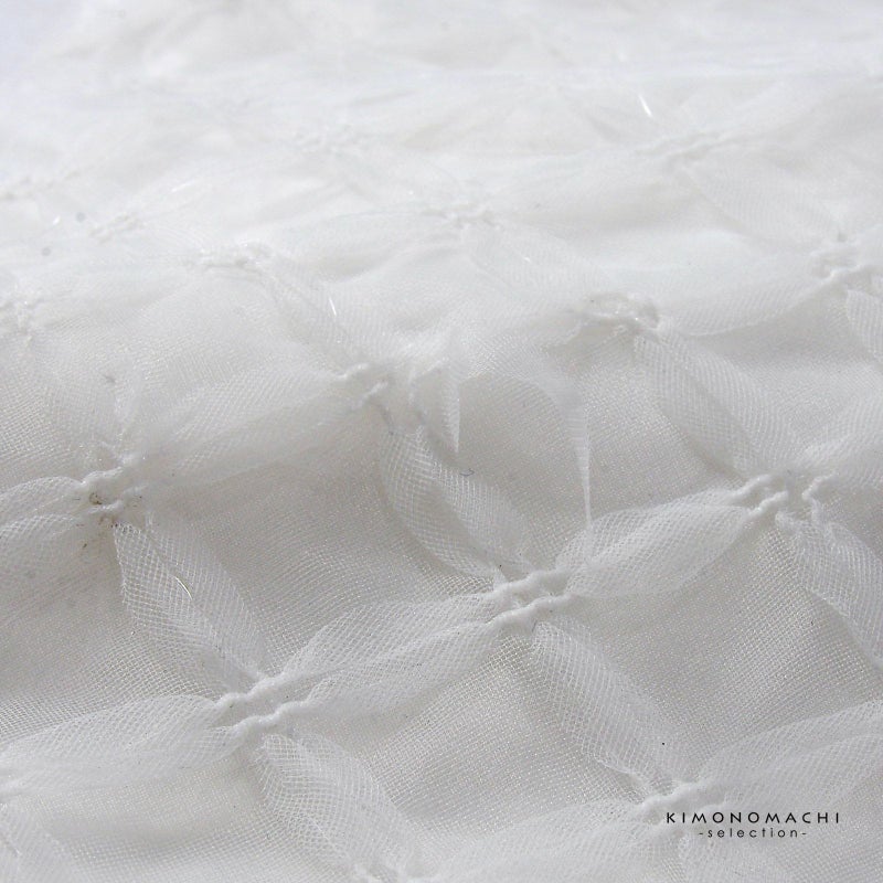 【色柄】白の格子状にプリーツを寄せた変わり織りのチュールレース地。