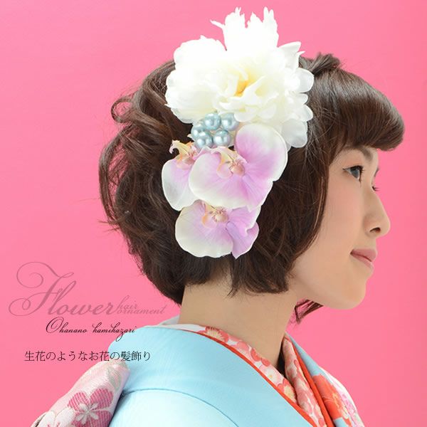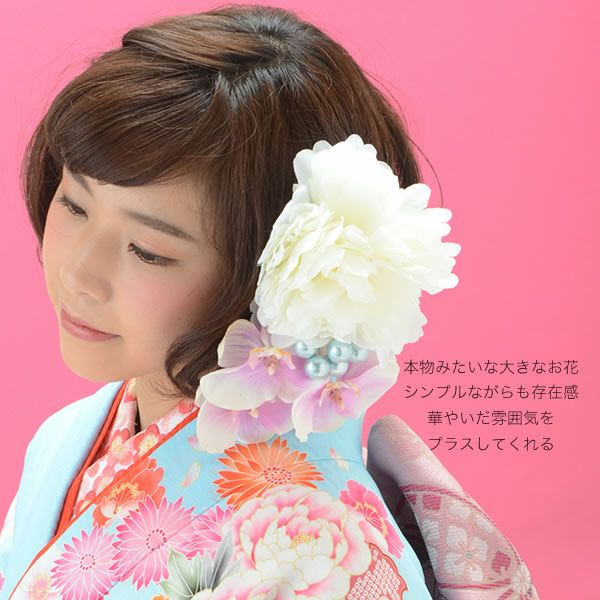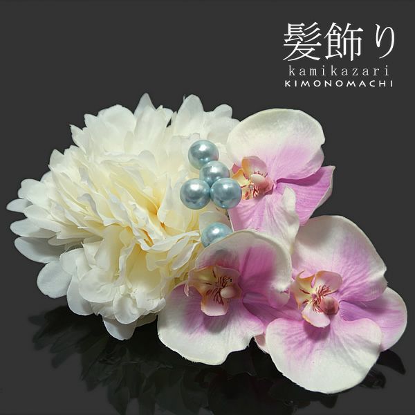 (卒業式応援75%SALE 2/19迄)【Prices down5】振袖髪飾り「白色ダリヤ、藤色ぼかし蘭」フラワー 結婚式 振袖 前撮り 【メール便不可】ss2512wkk40