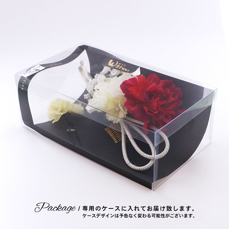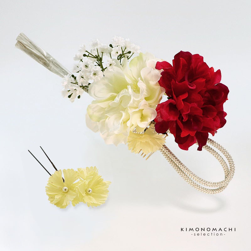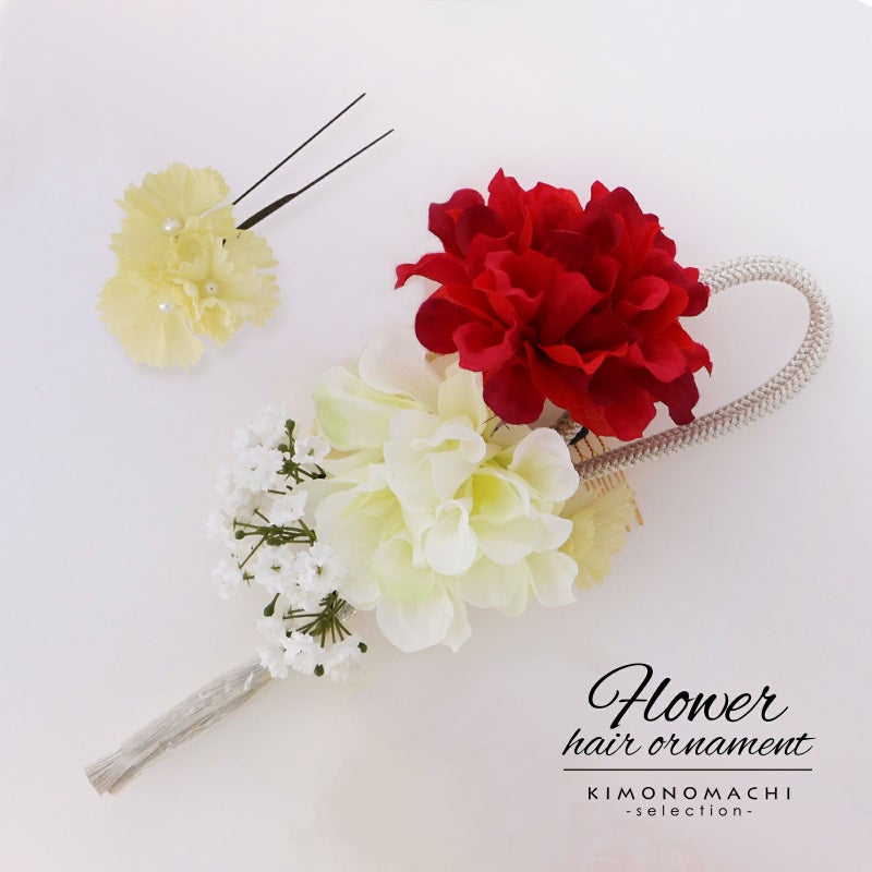 (卒業式応援75%SALE 2/19迄)【Prices down5】髪飾り 成人式 卒業式 Watuu(和つう)「赤×白色のお花、シルバーの組紐飾り」 振袖 結婚式 お花髪飾り 前撮り ヘアアクセサリー(No.238)【メール便不可】ss2512wkk45