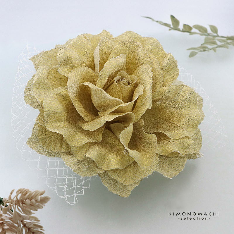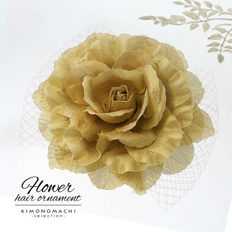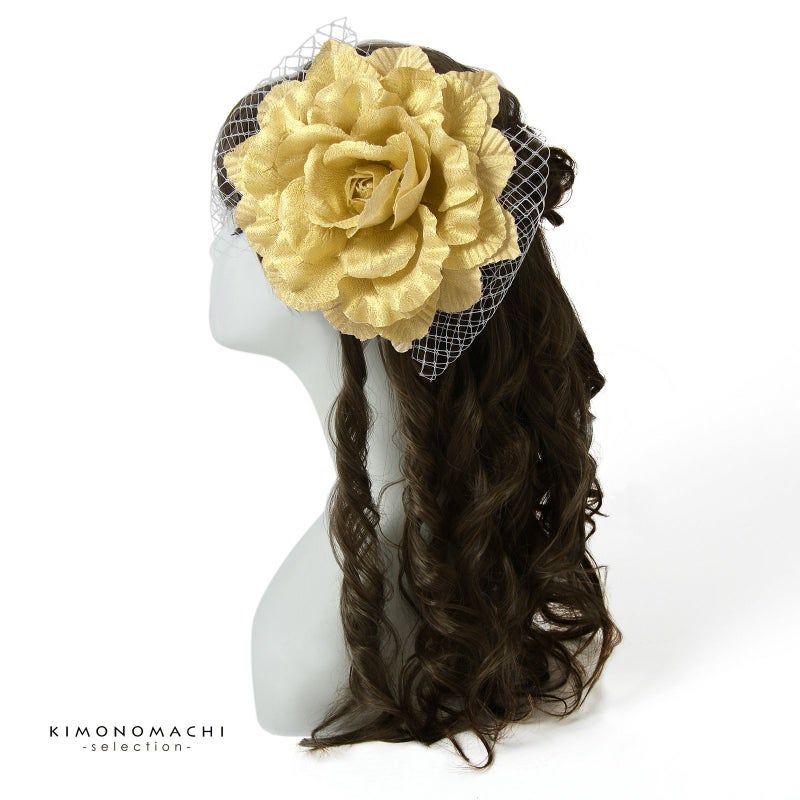 【Prices down3】髪飾り 成人式 卒業式 「ゴールド 大きな薔薇とレース」 振袖 お花髪飾り 前撮り ヘアアクセサリー【メール便不可】ss2512wkk70