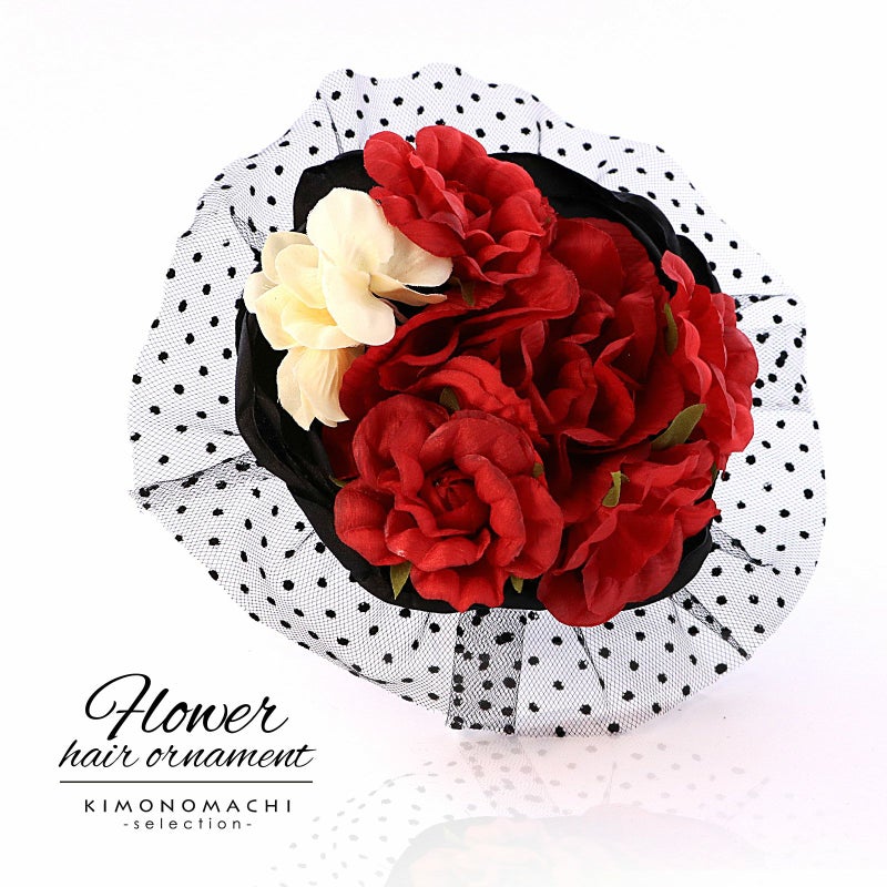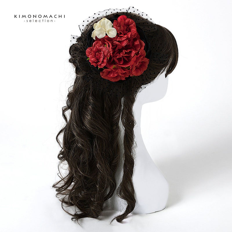 【Prices down5】髪飾り 成人式 卒業式 「赤×黒色 花とレース」 振袖 お花髪飾り 前撮り ヘアアクセサリー【メール便不可】ss2512wkk25