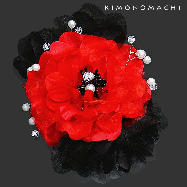 【Prices down5】振袖 お花髪飾り「赤×黒色 お花とパールビーズ飾り」前撮り 振袖髪飾り 成人式 ヘアアクセサリー 【メール便不可】ss2512wkk35