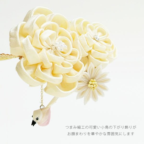 (卒業式応援75%SALE 2/19迄)【Prices down3】つまみ細工髪飾り単品「白色のつまみ細工のお花、鳥」髪飾り単品 卒業式の袴にも 振袖 フラワーコーム 成人式 (TN14NO4)【メール便不可】ss2512wkk35