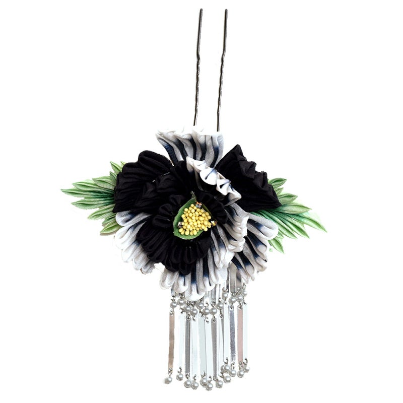 (卒業式応援75%SALE 2/19迄)【Prices down5】髪飾り つまみ細工 成人式 「黒色 牡丹」 振袖 お花髪飾り 袴 レトロ つまみ細工かんざし(02002)【メール便不可】ss2512wkk35