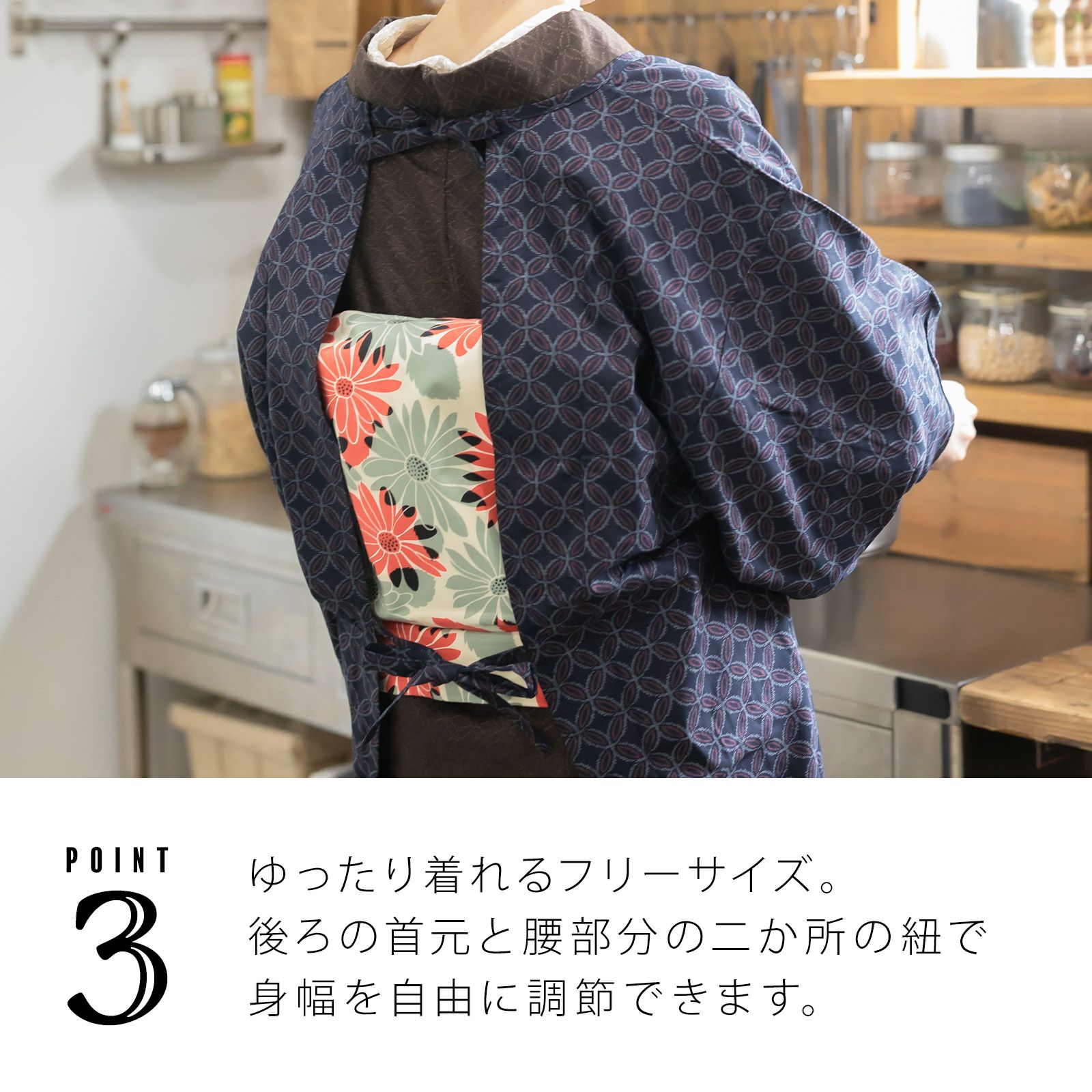 他の画像を見る 送料無料 【プレゼントに最適】着物にも、普段使いにも オシャレなロング割烹着 ギフト プレゼント ロング丈 割烹着「麻の葉・編み物風・モダンフラワー・フラワー 全6柄」実用的 日本製 オシャレ かわいい かっぽう着 綿割烹着 ロング割烹着 着物割烹着 エプロン プレゼント最適品 母の日 誕生日 クリスマス【送料無料】【メール便不可】ss2503wkm10 きもの町価格 ¥ 4,950 税込 詳細を見る お気に入りに登録する