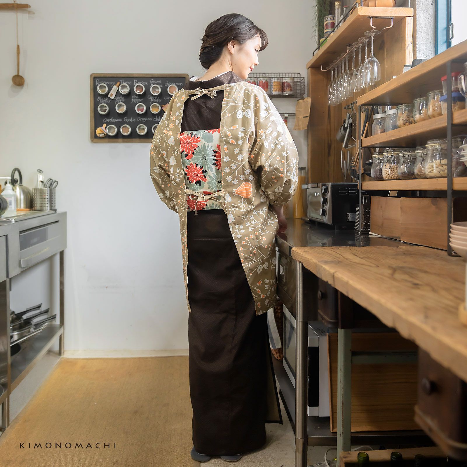 他の画像を見る 送料無料 着物にも、普段使いにも ギフト・プレゼントに オシャレなロング割烹着 ロング丈 割烹着 「ブラウンフラワー」実用的 日本製 オシャレ かわいい 綿割烹着 ロング割烹着 着物割烹着 エプロン 母の日 敬老の日 誕生日 プレゼント最適品 【送料無料】【メール便不可】 きもの町価格 ¥ 4,950 税込 詳細を見る お気に入りに登録する