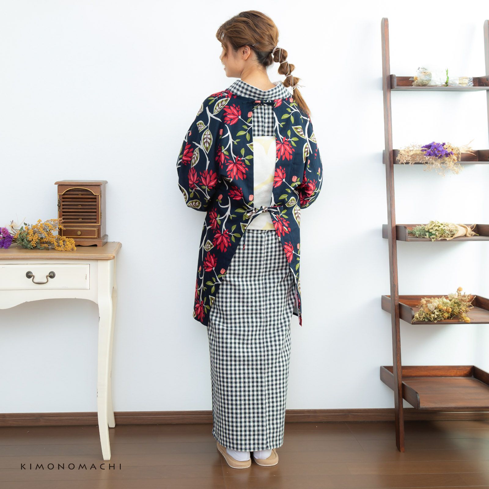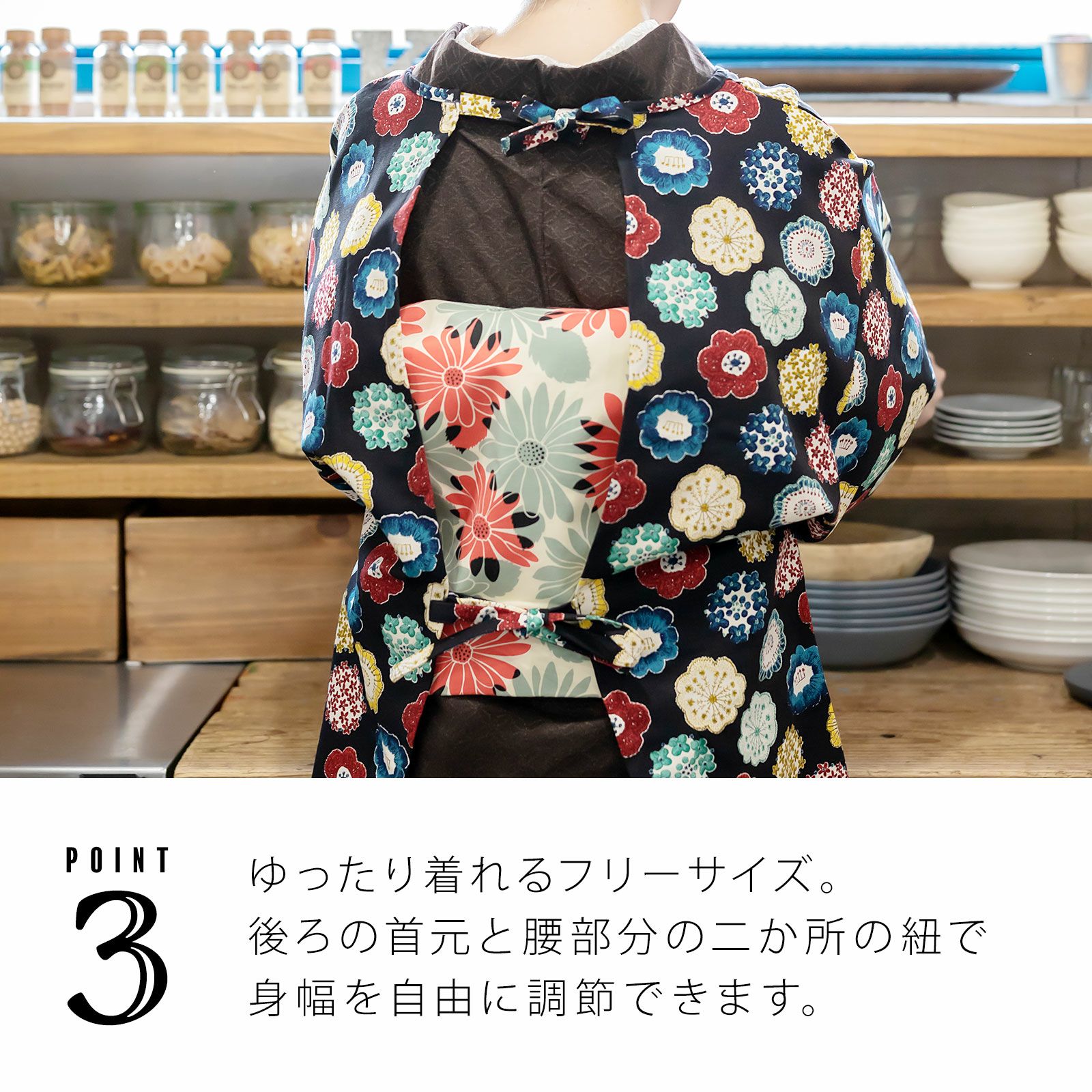 他の画像を見る 送料無料 着物にも、普段使いにも ギフト・プレゼントに オシャレなロング割烹着 ロング丈 割烹着 「ネイビーブラックモダンフラワー」 実用的 日本製 オシャレ かわいい 綿割烹着 ロング割烹着 着物割烹着 エプロン 母の日 敬老の日 誕生日 プレゼント最適品 【送料無料】【メール便不可】 きもの町価格 ¥ 4,950 税込 詳細を見る お気に入りに登録する