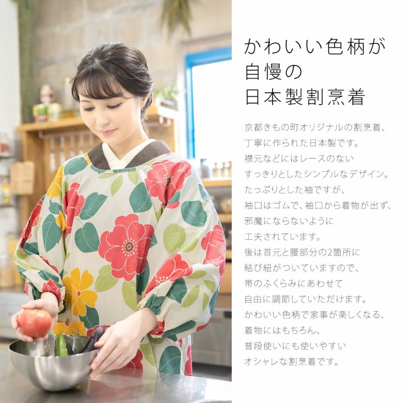京都きもの町オリジナルの割烹着、丁寧に作られた日本製です。