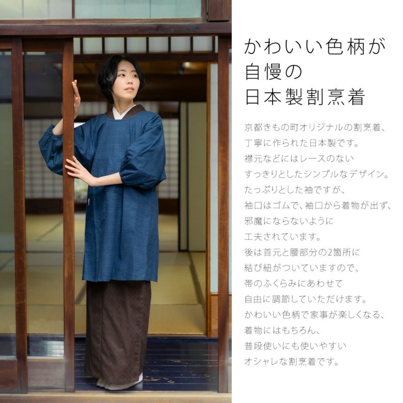 京都きもの町オリジナルの割烹着、丁寧に作られた日本製です。