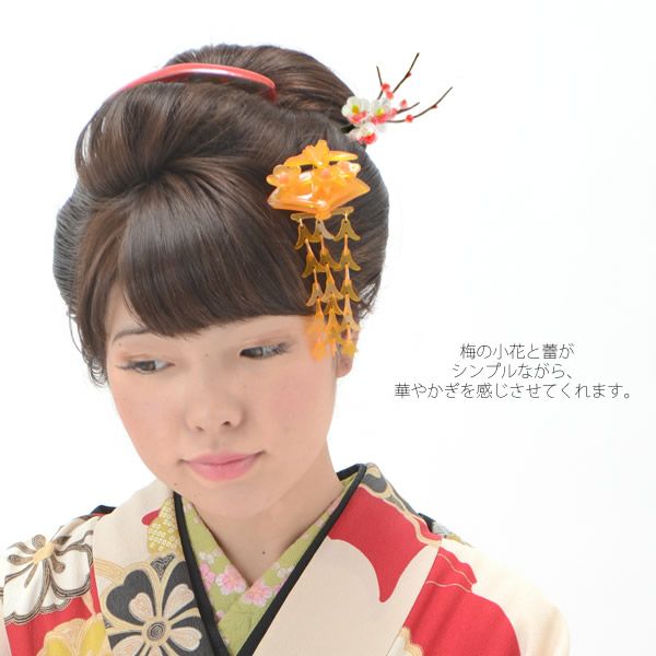 梅のお花、蕾のついた梅の枝モチーフのUピン髪飾りです。シンプルですが、上品に、美しい雰囲気をプラスしてくれます。