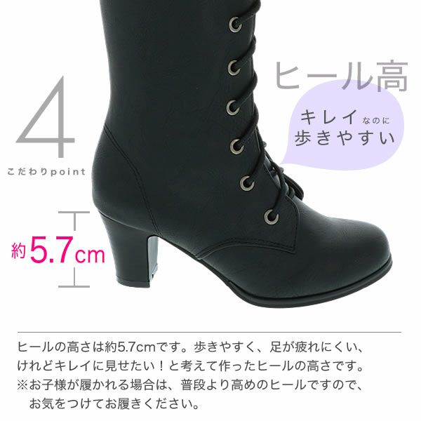 シンプルな黒色の編み上げブーツ(レースアップブーツ)です。
