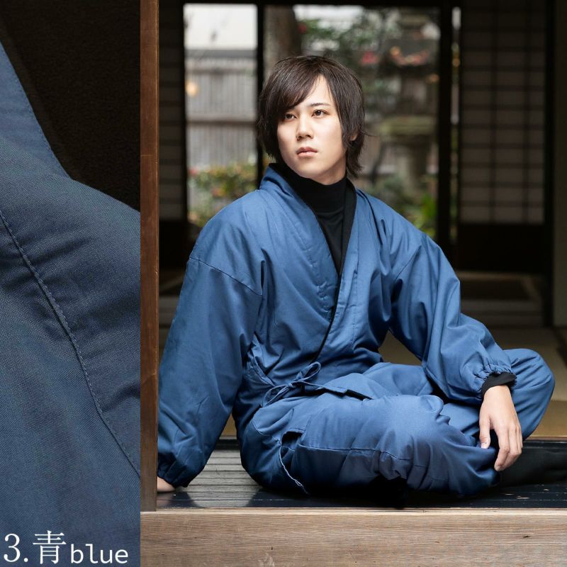 作業着や部屋着として、またちょっとした外出に、寒い季節を快適に過ごせる冬用作務衣です。まだ肌寒い春先にも。