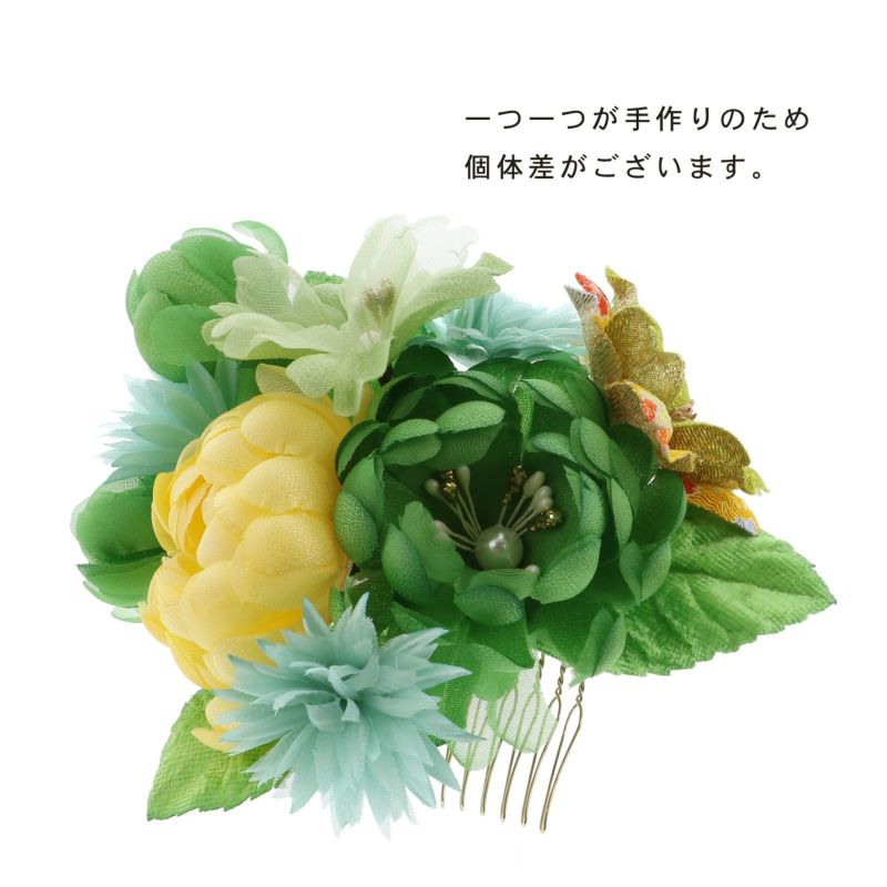 お花のコーム、Uピンの髪飾り2点セットです。振袖などの華やかなお着物に合わせて、成人式、結婚式などの晴れやかな席に。