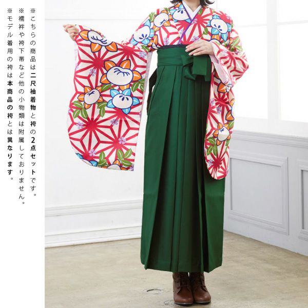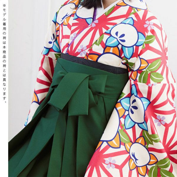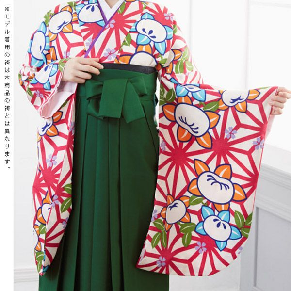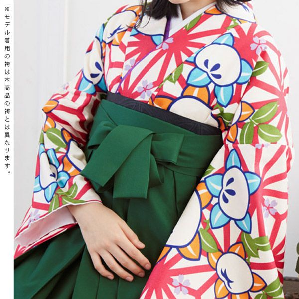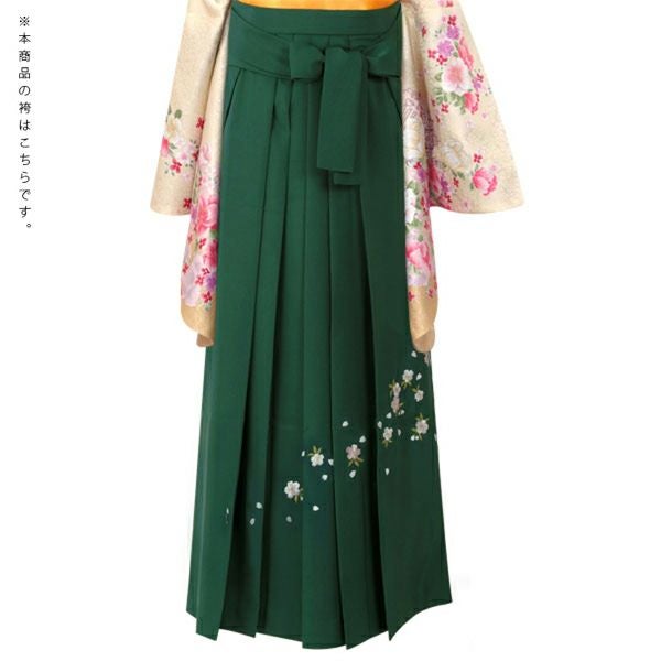 袴は緑地に桜の刺繍。(商品画像1枚目の袴とは異なります。)