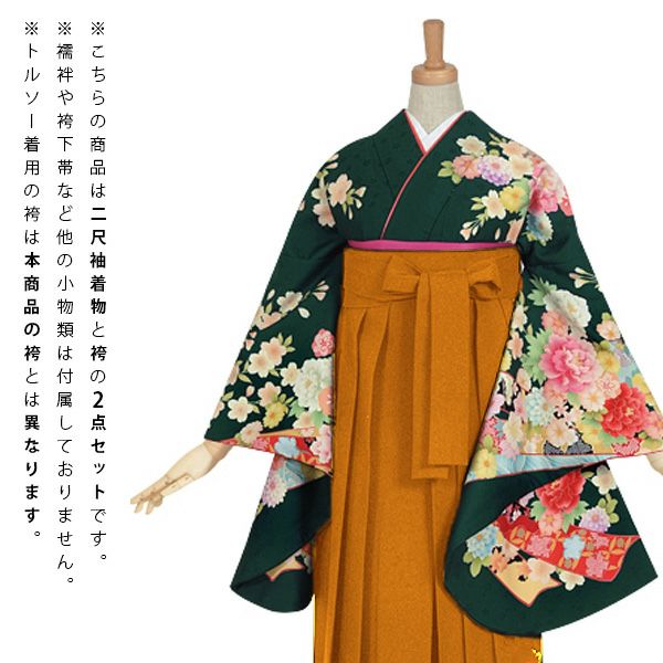 袴は金茶色地にレトロでポップな菊の刺繍。(商品画像1枚目の袴とは異なります。)