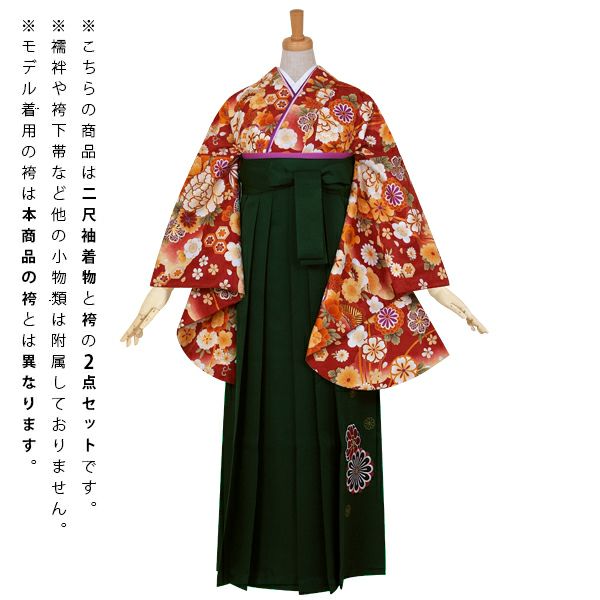 袴は緑地に桜の刺繍。(商品画像1枚目の袴とは異なります。)