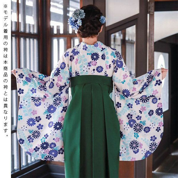 袴は緑地に桜の刺繍。(商品画像1枚目の袴とは異なります。)