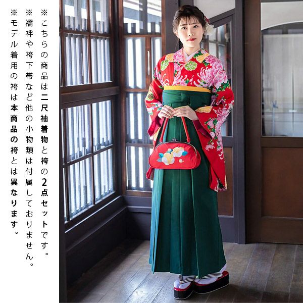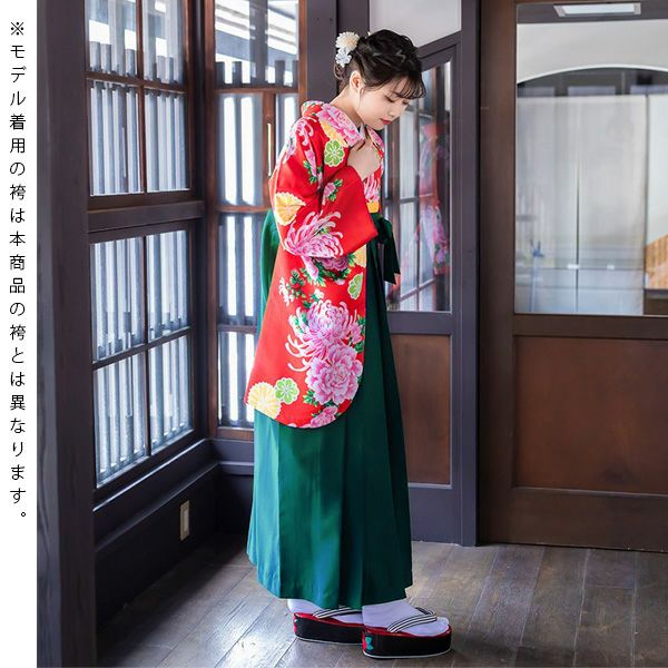 袴は緑地に桜の刺繍。(商品画像1枚目の袴とは異なります。)