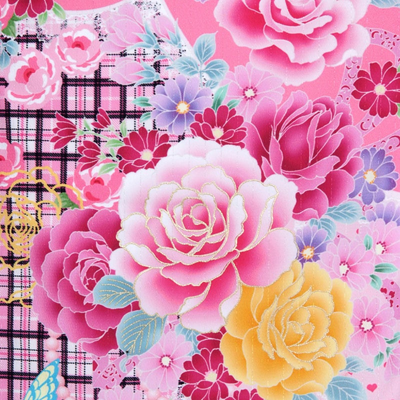 →襦袢はこちら→襦袢の身上げ・肩上げはこちら【カラー】華やかなバラにレースやパールの模様を添え、ハートのドットやチェックなどのキュートなアイテムを盛り込みました。おしゃれさんにおすすめしたい、個性的なデザインです。