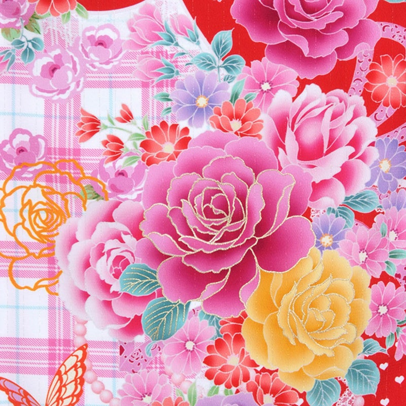 →襦袢はこちら→襦袢の身上げ・肩上げはこちら【カラー】華やかなバラにレースやパールを添え、ハートのドットやチェックなどのキュートなアイテムを盛り込みました。おしゃれさんにおすすめしたい、個性的なデザインです。