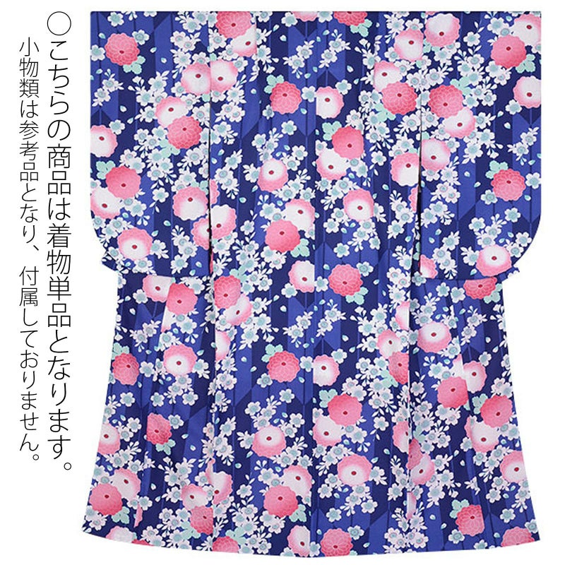 →襦袢はこちら→襦袢の身上げ・肩上げはこちら【カラー】紺色と青の矢羽根に、愛らしい菊と桜の花をちらしました。シックな地に華やかなピンクの菊が浮かび上がる、レトロモダンなお着物です。