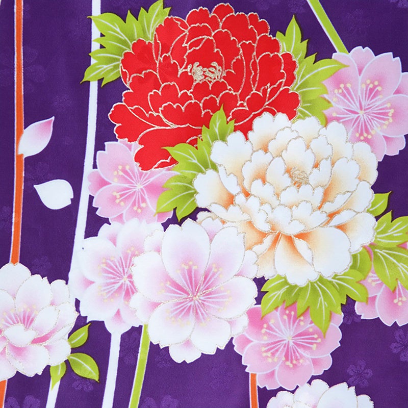 →襦袢はこちら→襦袢の身上げ・肩上げはこちら【カラー】小桜の地紋が入った紫地に、上品な色合いの花くす玉を描きました。すっきりとした紐のラインが印象的なお着物です。