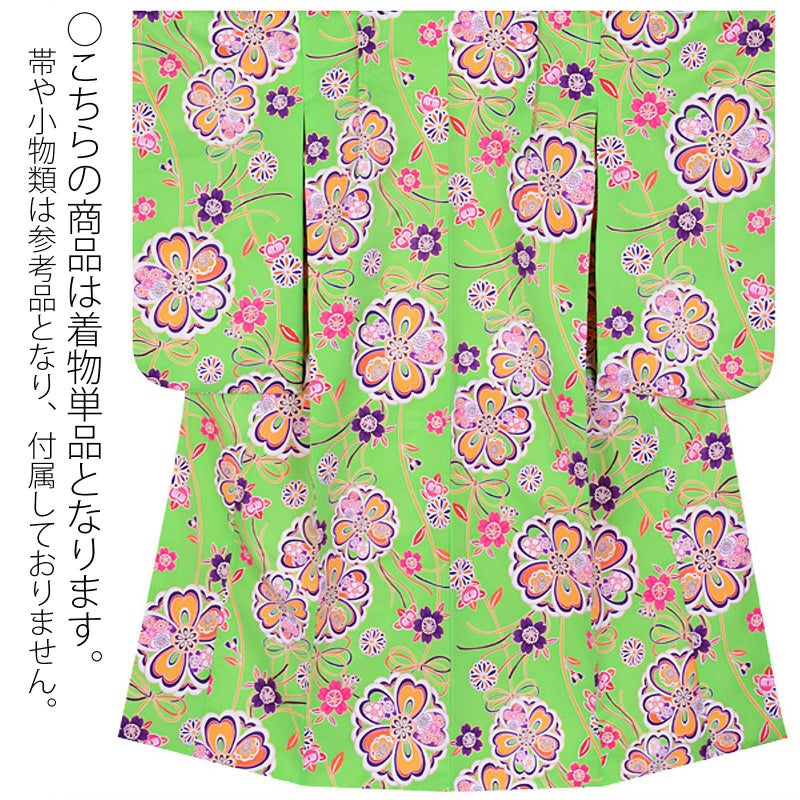 →襦袢はこちら→襦袢の身上げ・肩上げはこちら【カラー】鮮やかな黄緑色地に、桜や菊の花とお結び紐の文様を描いて、鮮やかな地色に可憐な文様が映えるデザインです。