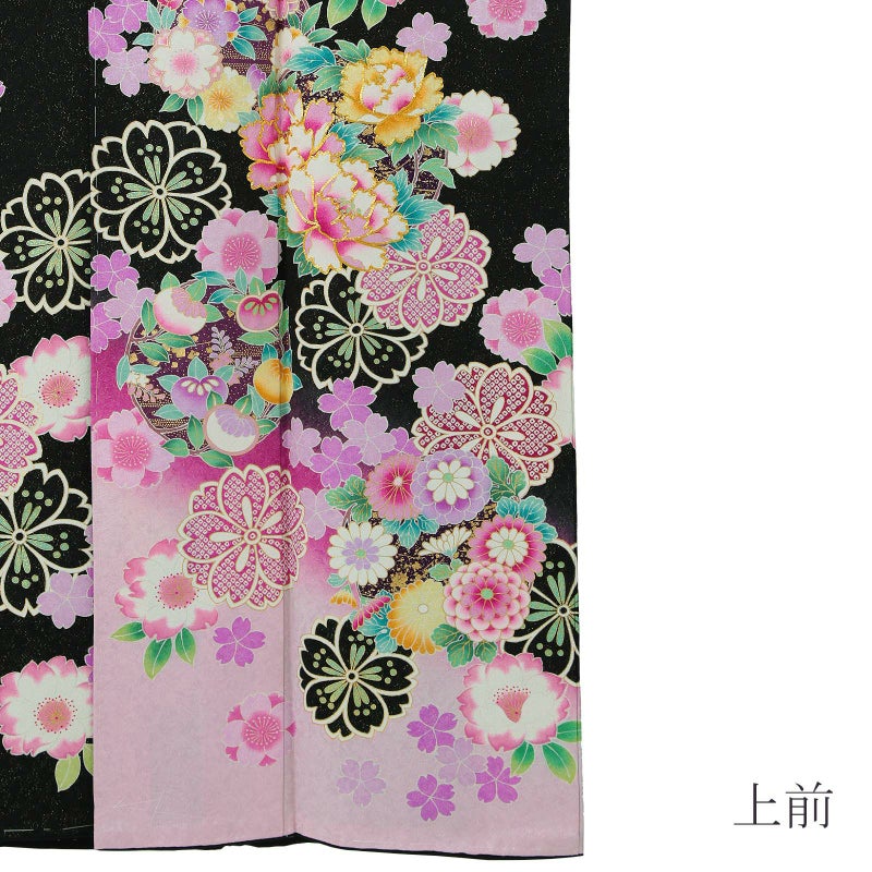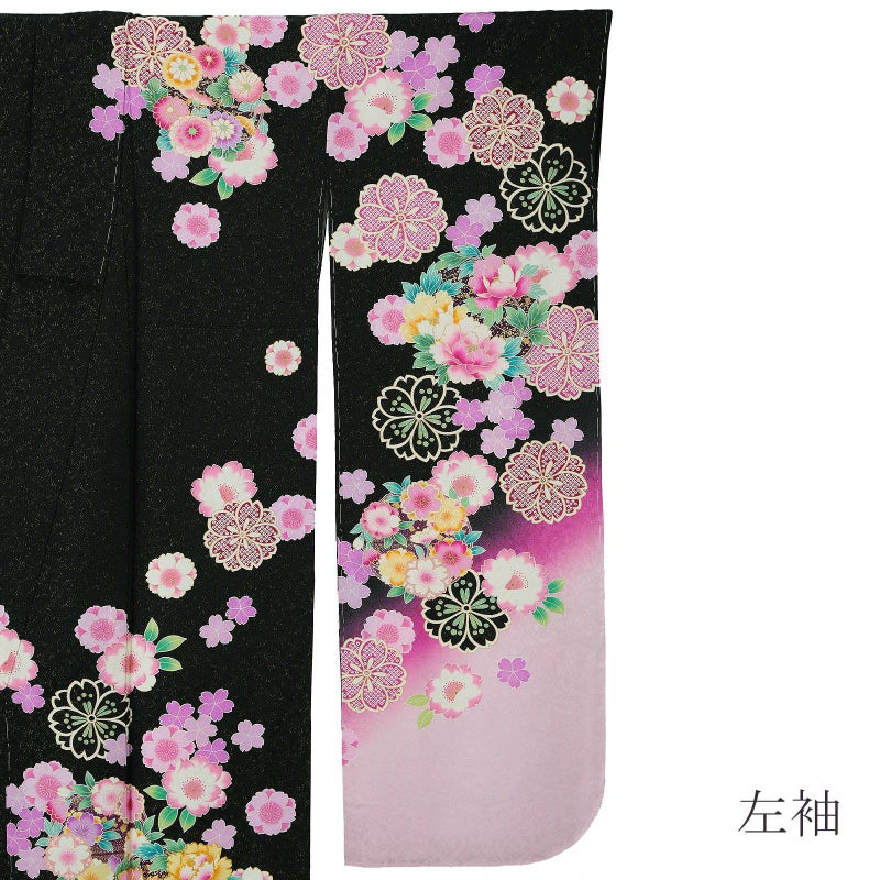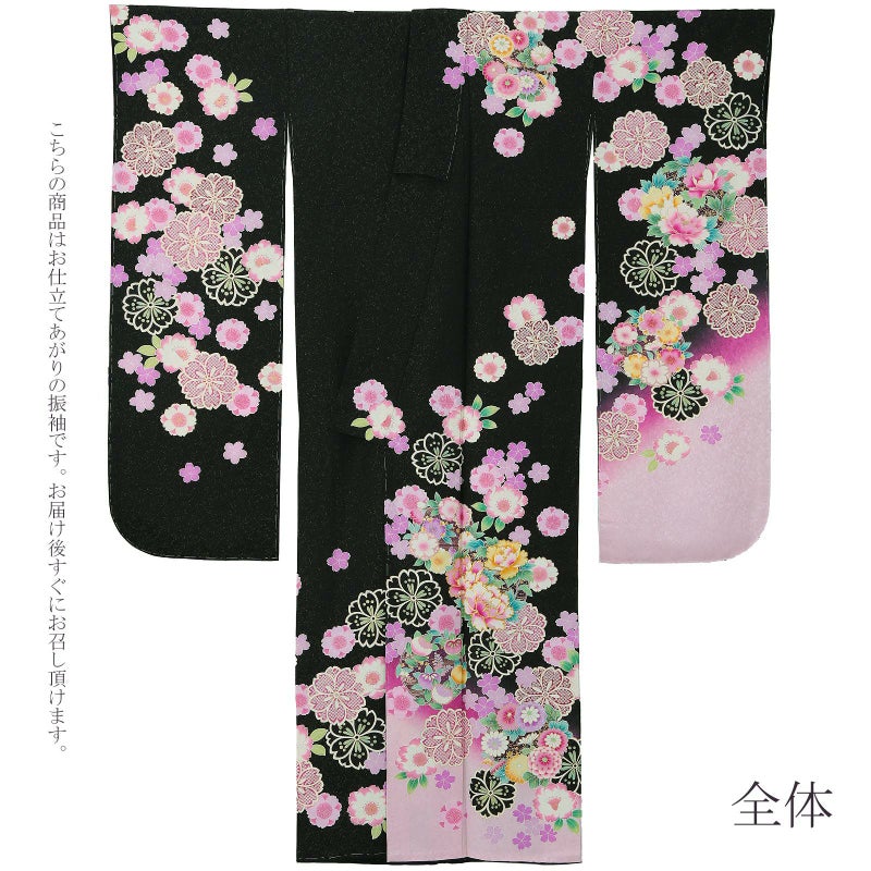 【新古品】お仕立て上がり 振袖単品 「黒地 八重桜に花の丸」 振袖 振り袖成人式 結婚式 結納 パーティー