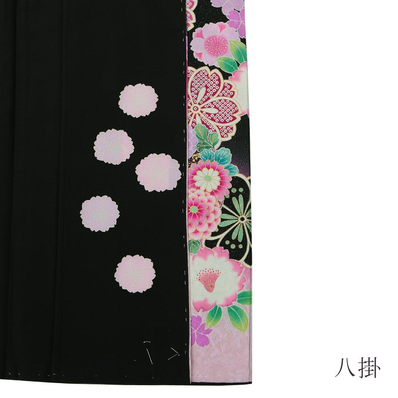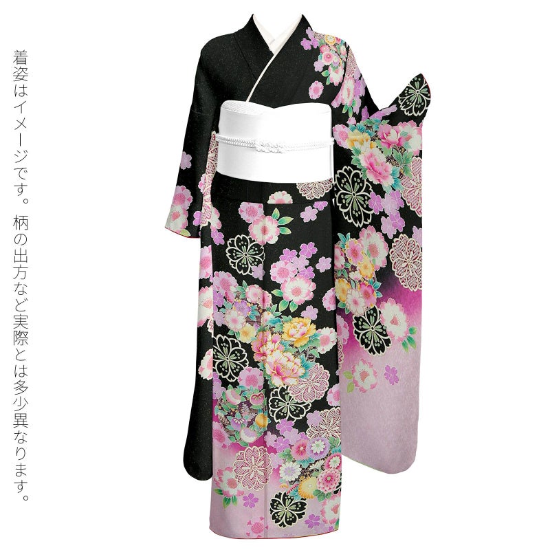 3. (卒業式応援75%SALE 3/5迄)【新古品】お仕立て上がり 振袖単品 「黒地 八重桜に花の丸」 振袖 振り袖成人式 結婚式 結納 パーティー 【メール便不可】ss2512fml10