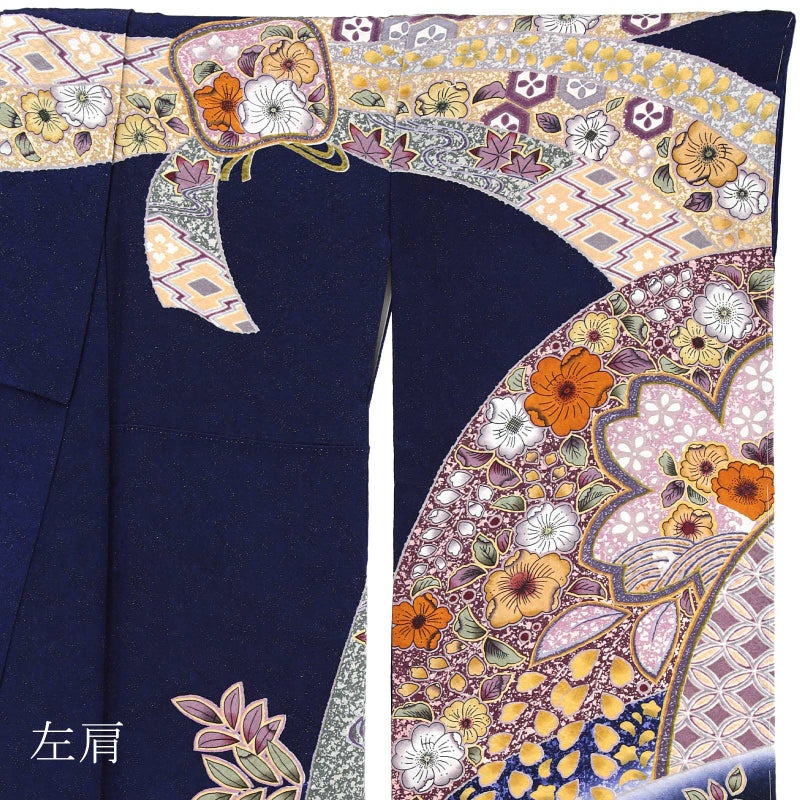 成人式や結婚式などに お仕立てあがりの華やかな振袖単品 (卒業式応援75%SALE 3/5迄)【新古品】お仕立て上がり 振袖単品 「紺藍 辻が花、束ね熨斗」 振り袖 着物 レディース 成人式 結婚式 結納 パーティー 晴れ着 【メール便不可】ss2512fml10