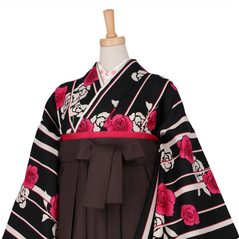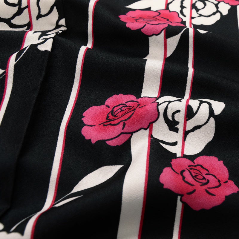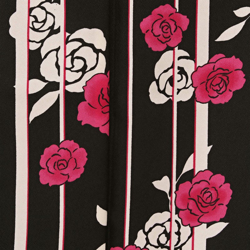 【色柄】シックな黒地に鮮やかなピンクとベージュで薔薇を描きました。シンプルな絵柄がどこか懐かしさを感じさせる、レトロモダンなデザインです。